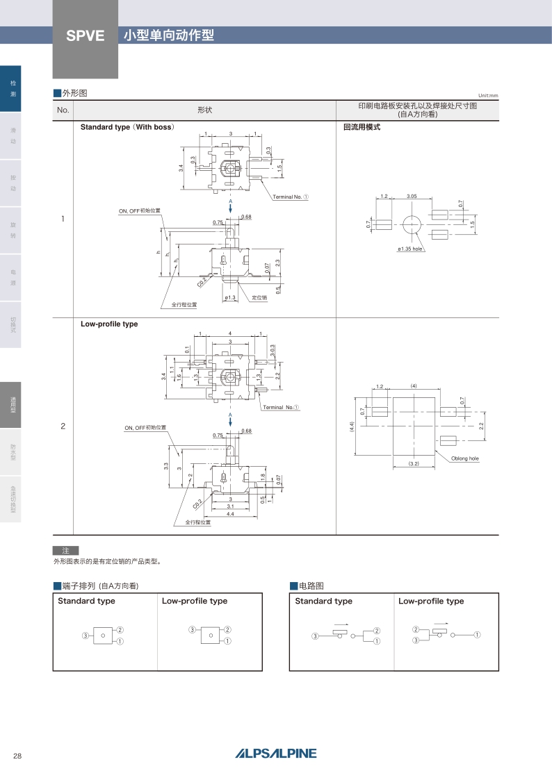 SPVE110200 照片 1 1 For PC board (Reflow) 0.3N max. 4.8 4.5 3.6 Standard 3.4×3.0×2.3mm