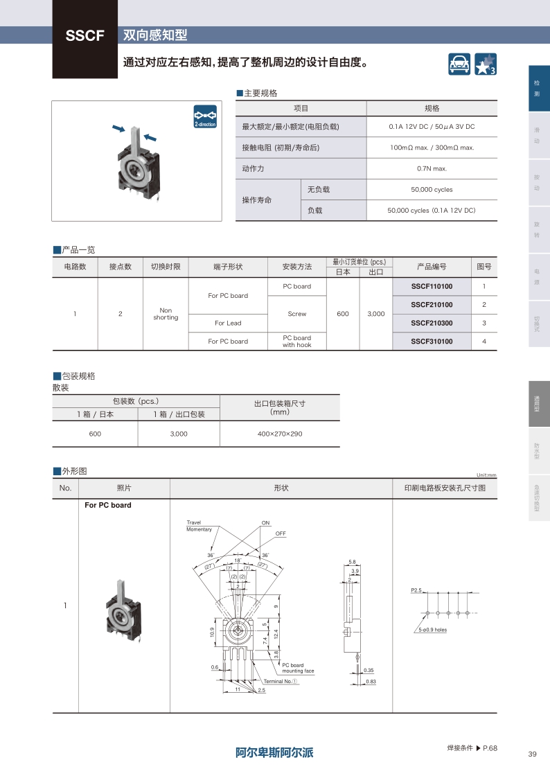 采購:SSCF系列——ALPS檢測開關