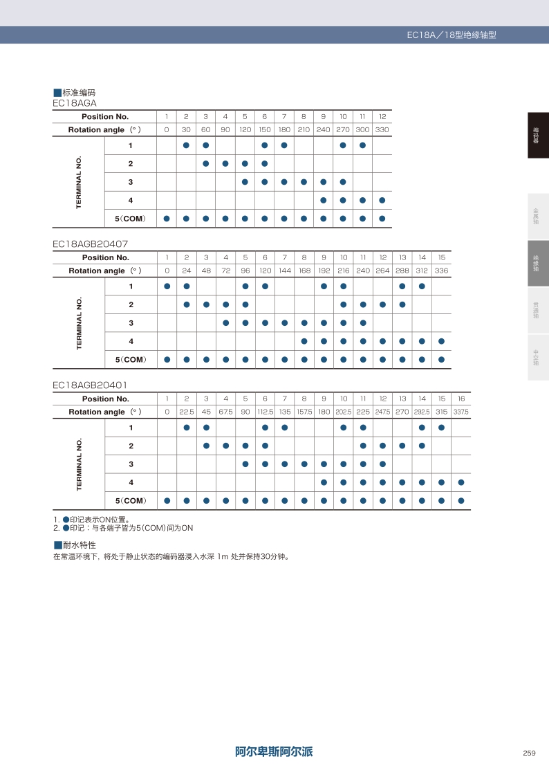 實現了高耐水性、重扭矩的絕對型產品,輸出:絕對型 ? 外形尺寸:18mm size ? 定位數:12 / 15 / 16 ? 脈沖數(位置數):12-position / 15-position / 16-position ? 操作壽命:30000 cycles ? 最大額定值:1mA 10V DC。