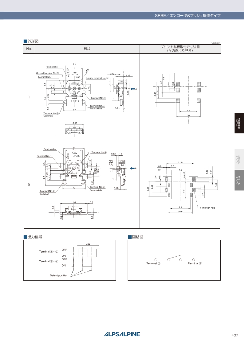 SRBE系列可以利用裝備側面空間的小型多功能裝置。功能:中央按動和編碼器 ? 尺寸(W×D×H):8.05×11.0×2.35mm(表面貼裝式) ? 最大額定值:1mA 5V DC。