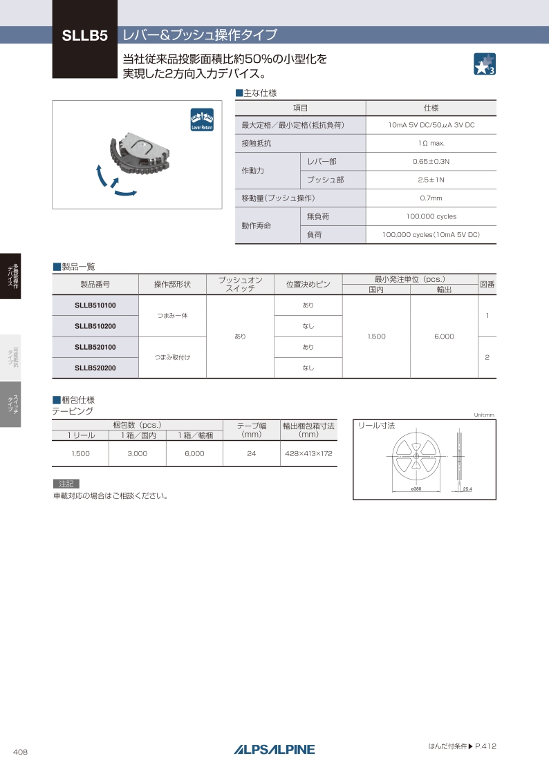 SLLB5系列投影面積僅50%(與本公司原有產品相比)的小型。方向分辨率:2方向 ? 功能:操作桿和按動 ? 尺寸(W×D×H):9.5×8.8×2.2mm ? 最大額定值:10mA 5V DC。