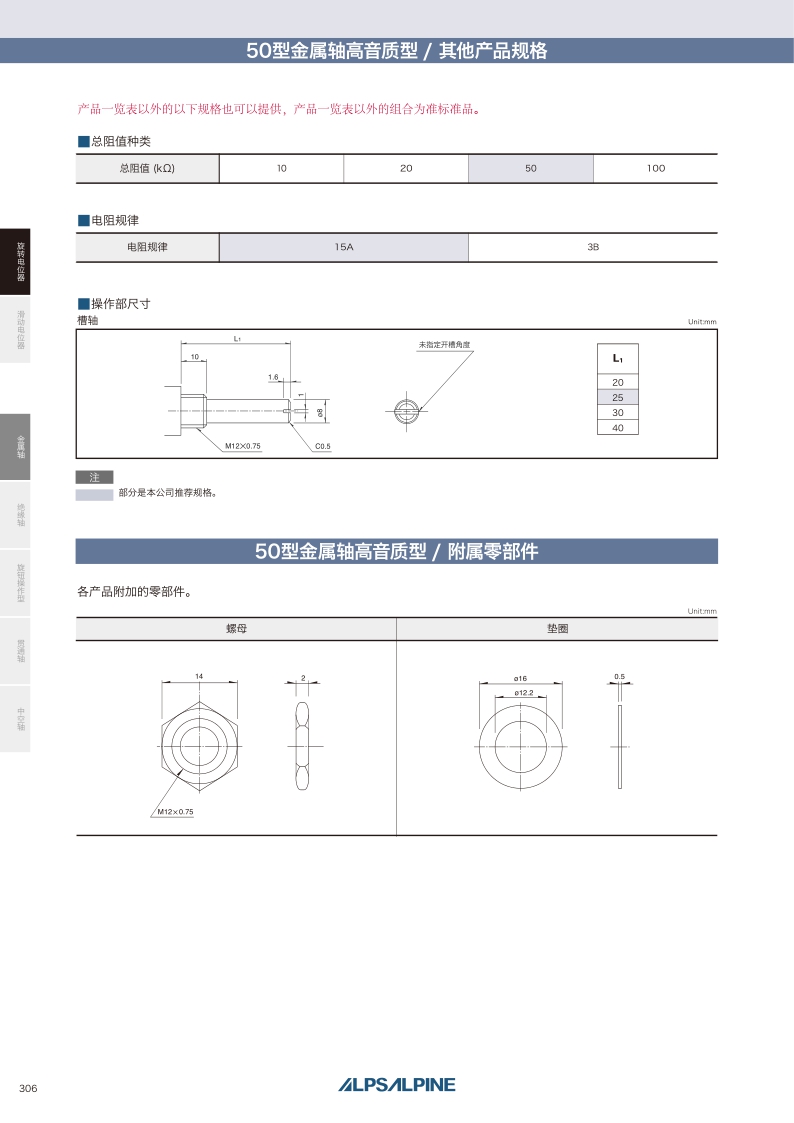 RK501系列——ALPS金屬軸電位器