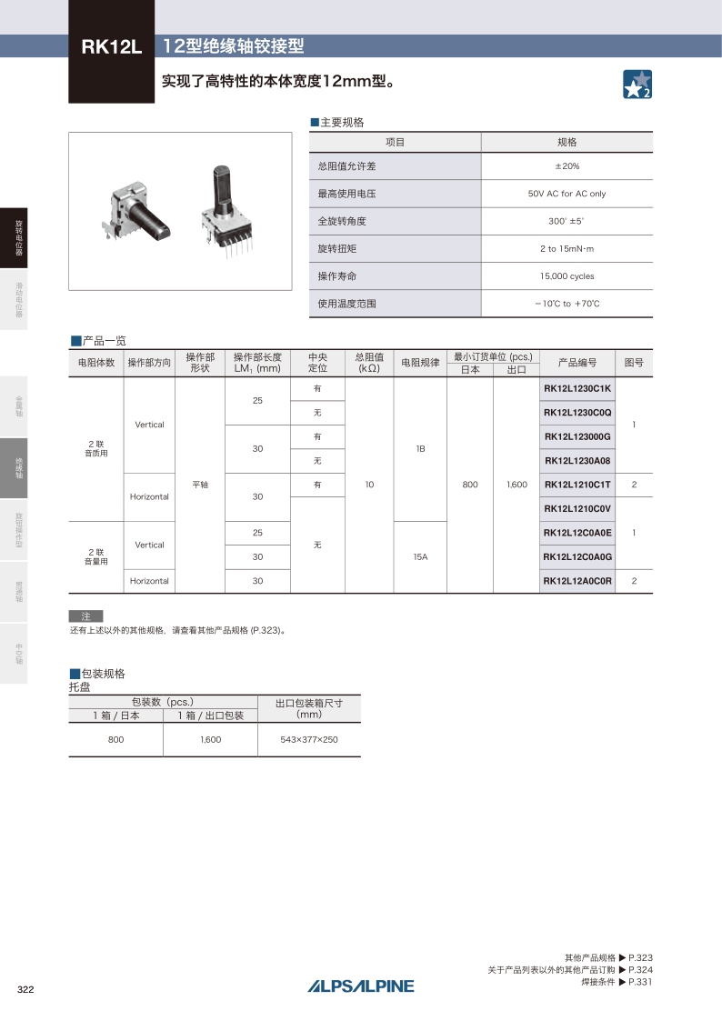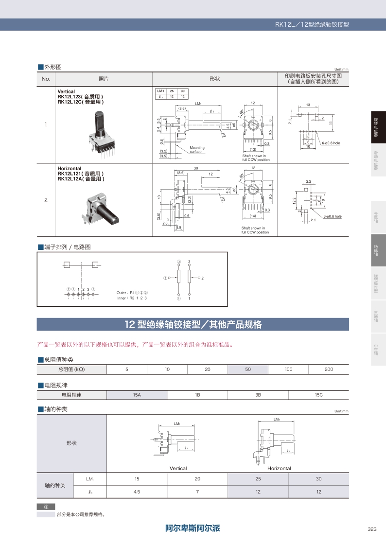RK12L系列實現了高特性的本體寬度12mm型。型:絕緣軸鉸接 ? 外形尺寸:12型 ? 電阻體數:2聯 ? 附屬開關:無。