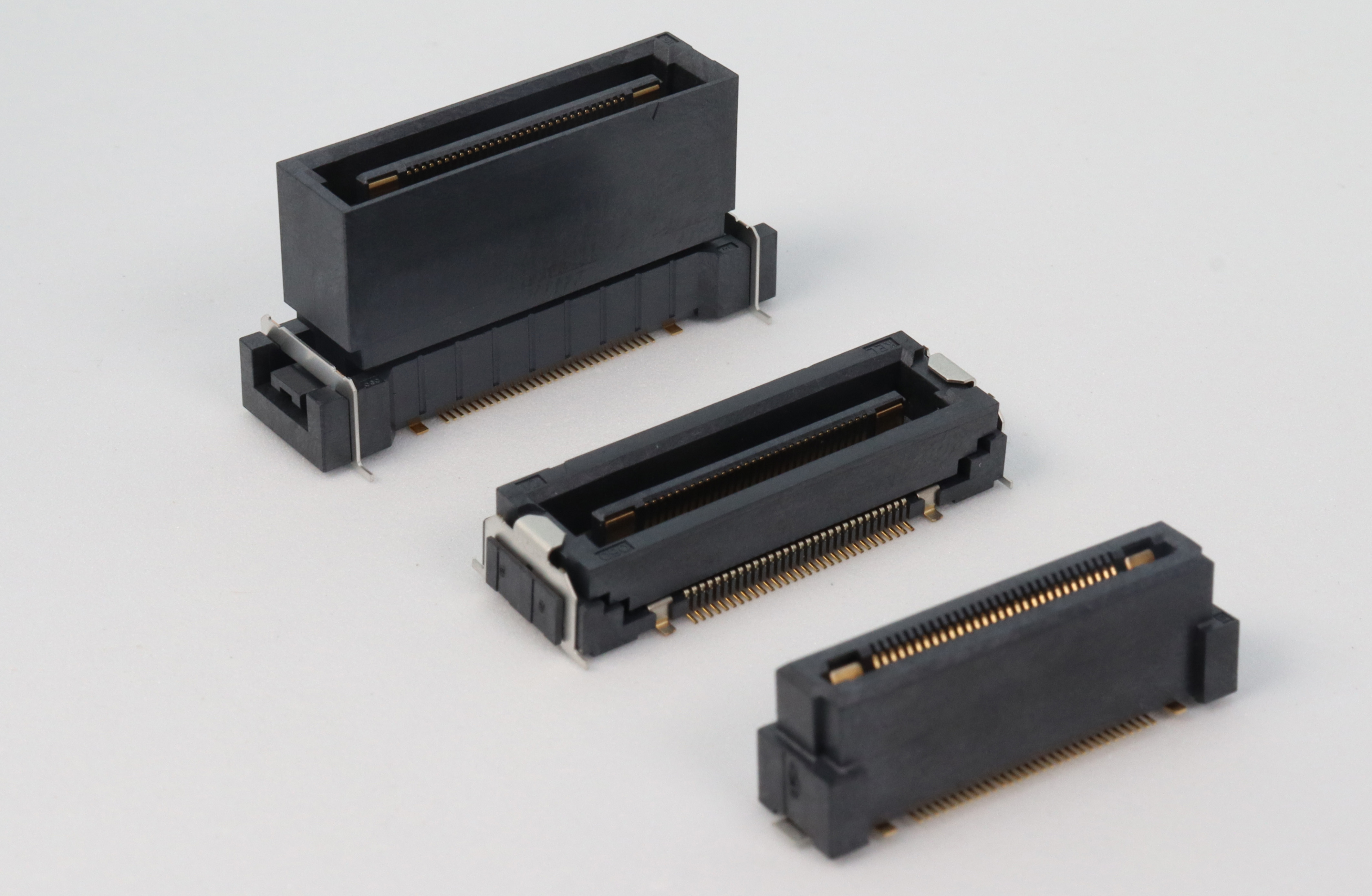 高速傳輸兼容0.5mm間距浮動連接器/帶電源端子型。0.5mm間距浮動連接器“DT系列”型帶電源端子。電源有4個端子,每個端子額定電流為6.0A。